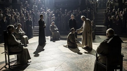 minutos espectacular que va alternando imágenes del juicio con escenas de Cersei,